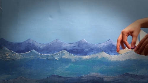 To build the small island I used a box of mushrooms and different crafting materials to finish the stage. The waves are made of cardboard and painted with acrylique paint by hand. The main characters were modeled in clay. The clouds, starts and some effects were added at the end in the post production on After Effects. The animation was made at 12 frames per second so approximately I had to take around 520 pictures for the whole film. I used the ukulele for composing the soundtrack and create a tropical feeling.